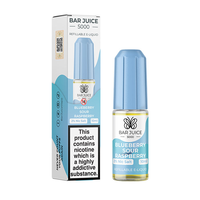 Blueberry Sour Raspberry is part of the UK-made Bar Juice 5000 range, a collection of bar style nicotine salt e-liquids crafted to deliver the bold flavour experience of disposable vapes. With over 50 fruity, icy, tobacco and creamy flavours available, there’s something to suit every taste.