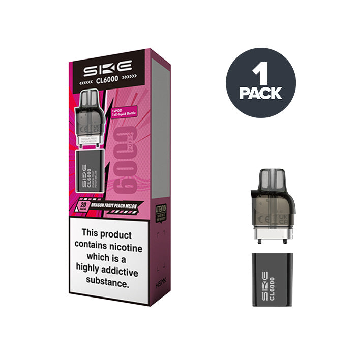 SKE CL6000 Dragon Fruit Peach Melon Pods are loaded with 20mg of salt nicotine, bringing you an ultra-smooth hit and instant nicotine satisfaction, making them ideal for beginner vapers.