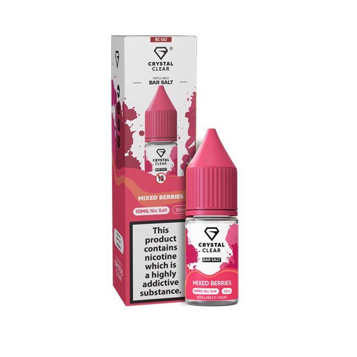 Mixed Berries is part of Crystal Clear’s Bar range, crafted in the UK to mimic top-selling disposable vape flavours. With 38 options, including fruit, ice, drink, and candy blends, there’s something for everyone.