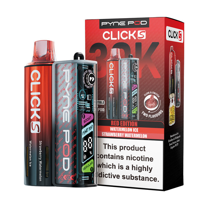 The Pyne Pod Click S 30K is a premium addition to the Click device family, designed for smooth MTL vaping with big, satisfying puffs. This prefilled vape kit combines convenience and performance with a rechargeable 900mAh battery and replaceable refill packs, making it both eco-friendly and versatile. Available in a wide variety of flavours, the Pyne Pod Click S can deliver up to 30,000 puffs, giving vapers long-lasting enjoyment. Its inhale-activated system ensures simplicity, while the OLED screen provides real-time battery and mode information, making this device perfect for both new and experienced vapers seeking reliable, flavourful satisfaction.